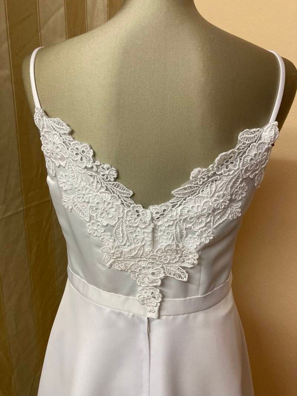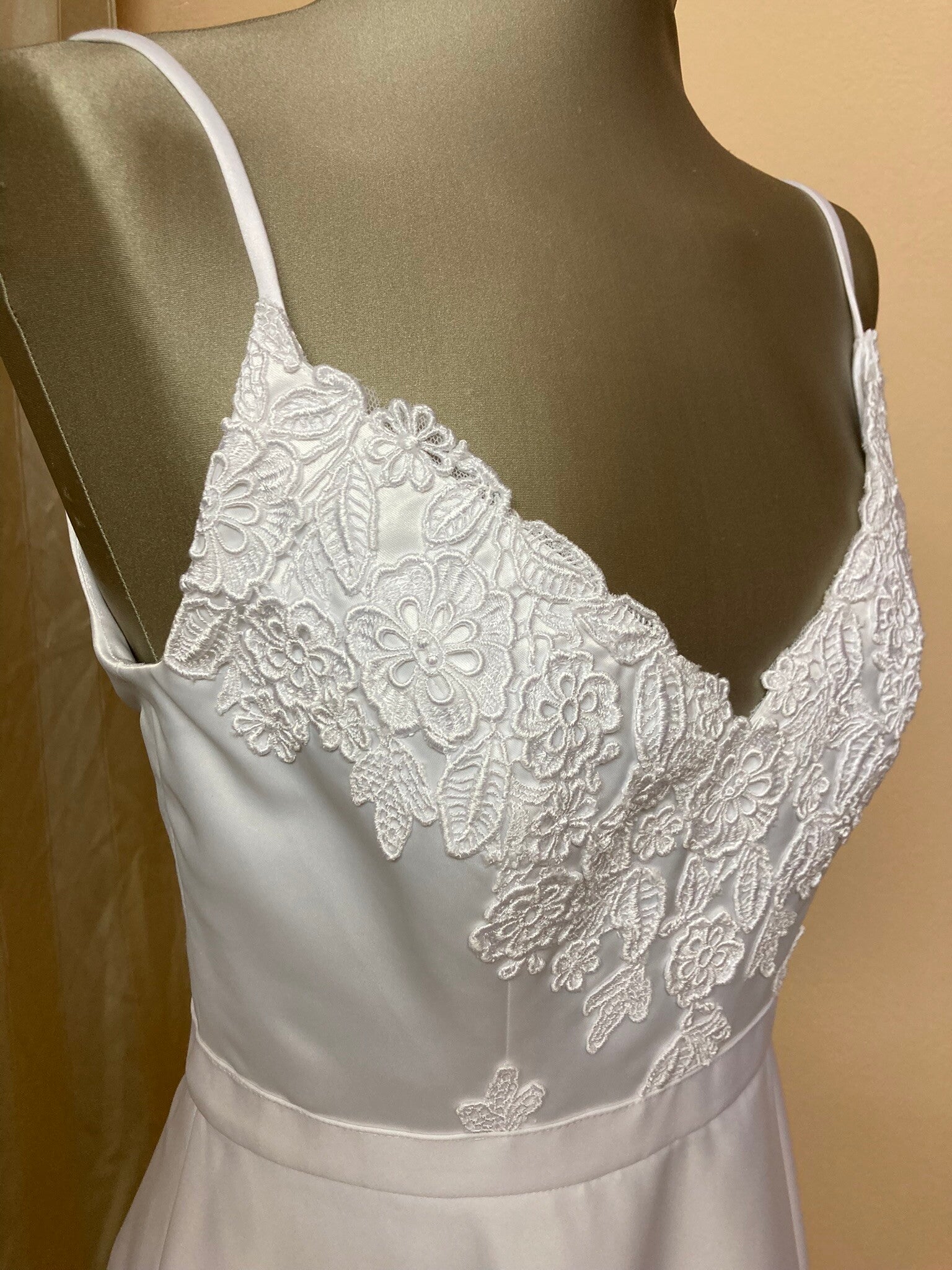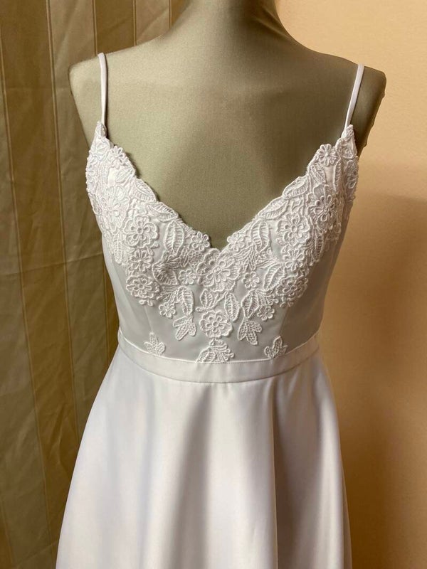 Ein weiteres Einzelstück kreirrt von Schneidermeisterin Maria Söls: wunderschöne Vintage-Spitze im Oberteil vorne und hinten, figurbetonter Ausschnitt ebenfalls vorne und hinten mit weitfallendem Rock bei Highwaist-Linie